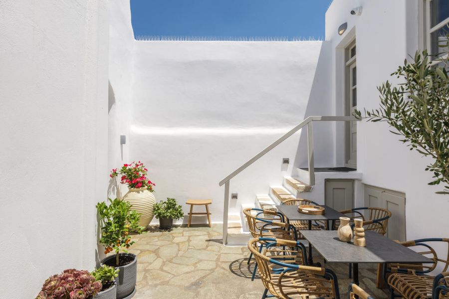 The residence features spacious and thoughtfully designed living areas, a large private courtyard, multiple balconies, and a stunning rooftop terrace that captures the essence of island living. A fully equipped modern kitchen, along with elegant indoor and outdoor dining spaces, creates the perfect setting for relaxing gatherings and unforgettable moments.