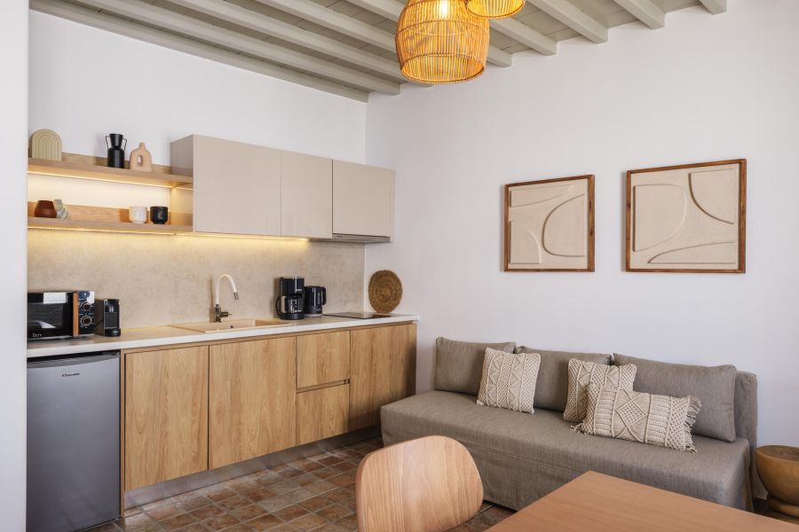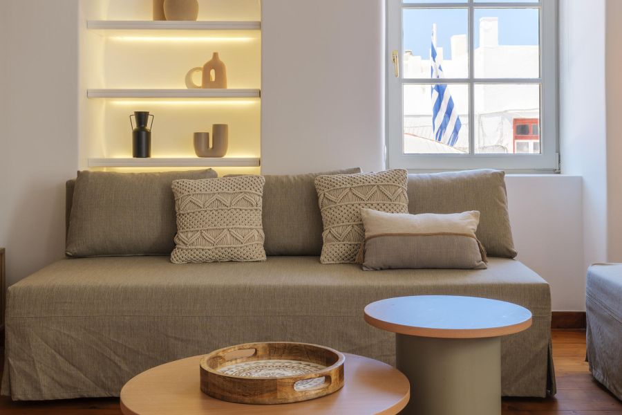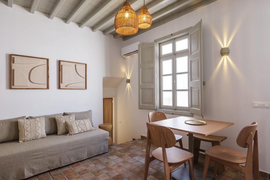 Designed for guests seeking both tranquility and proximity to the vibrant life of Mykonos, this refined four-bedroom, three-bathroom residence provides an unparalleled retreat. The property can also be conveniently divided into two separate apartments, offering flexibility for families or groups traveling together.